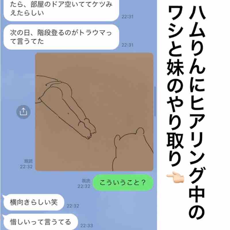 最近妹やんと妹やんの夫・ハムりん🐹から聞いた衝撃エピソードです。
