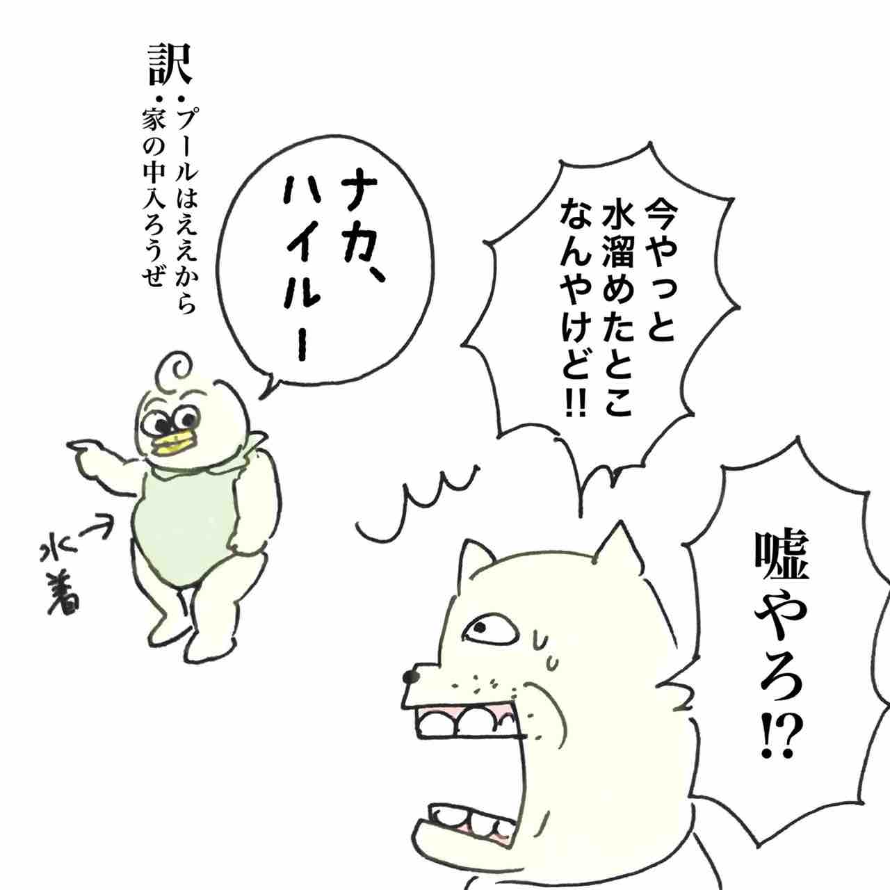 両親のコンビネーションの悪さと容量の悪さのコンボ。全く動かないプールを見てコチコーが爆笑してました笑