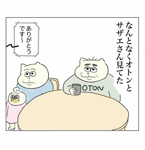 カテゴリ : 日常漫画😸🐤 フグ田タラオへの素朴な疑問 こんばんは🌝コチコーとオカンと滋賀なうのワシです。今日の漫画はサザエさんを見てた時の4コマです🐚そういうキャラ設定やねん!と言っておきました。ホンマに今更すぎるやろ大鉄並に煙草吸うオトンの話👇🏻Pやんがうちのオカンオトンに会った時の話👇🏻 ... 続きを読む