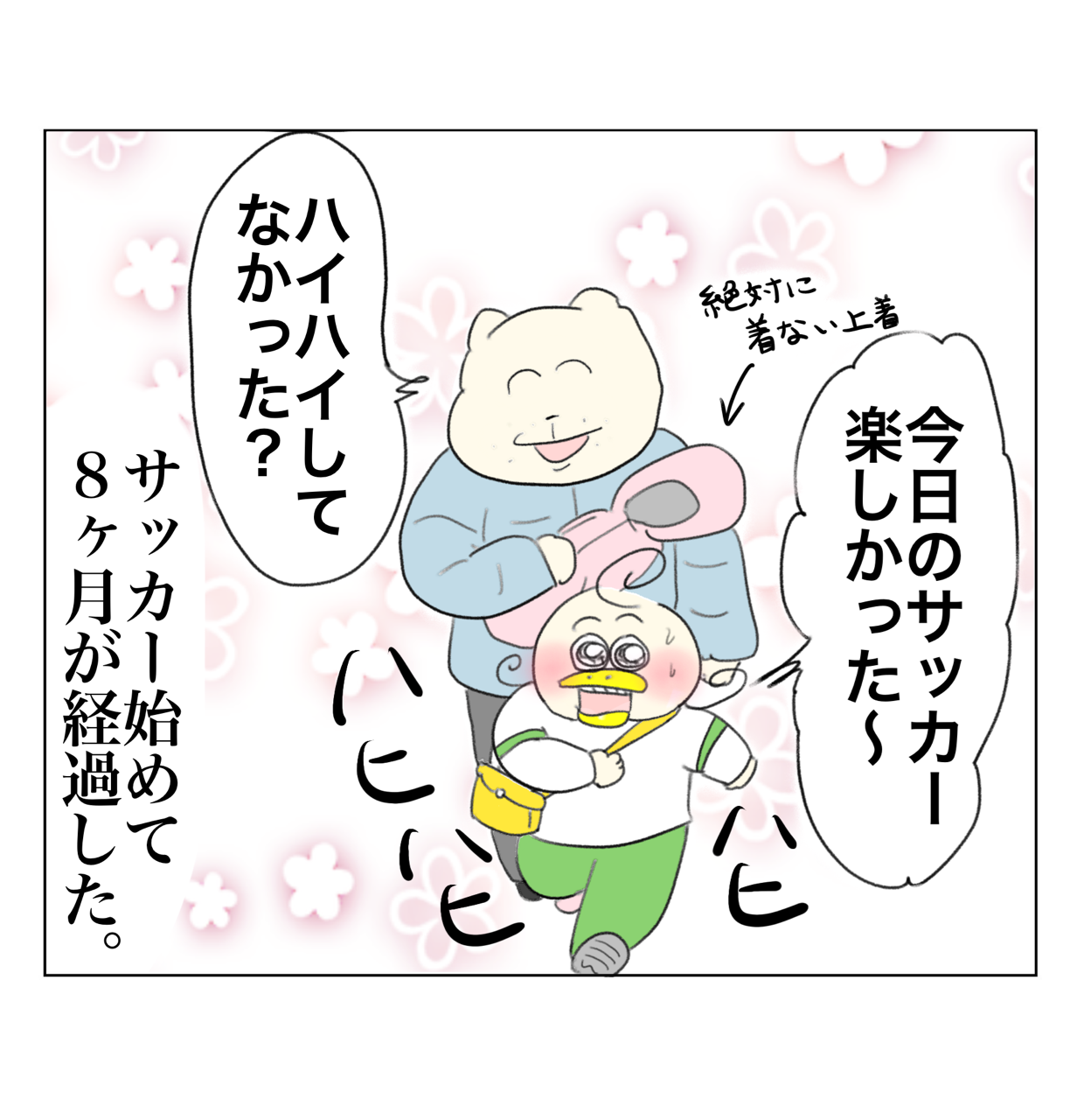 時が止まっているサッカー部 2024年12月16日 こわばんは🌝来週親知らずを一気に三本抜く事が確定したワシです。抜いた日の晩寝れないぐらい痛いと聞いたけど頑張る。今日は久々のサッカー部です⚽️ よう見たらコチコーやんけ二学期最後のサッカーはほぼボールに触れずに終了!!!!一度全てリセットされたサッカー部👇🏻 「コチコー漫画🐥」カテゴリの最新記事 < 前の記事次の記事 > コメント コメント一覧 (15) 1. なぜww 2024年12月16日 18:20 なぜハイハイをしてたか気になりますw 屋外で肘も膝も痛そうなのに…w 0 aandp1989 がしました 3. Aやん 2024年12月16日 18:36 >>1 あ、こちら屋内です!⚽️ それにしても子どもは訳わからん行動しがち😂 0 aandp1989 がしました 14. なるほど! 2024年12月17日 20:07 >>3 あっ屋内でしたか!なぜか屋外と思い込んでた! 失礼しました! サッカー中に赤ちゃん返るのかわいい⚽😂 0 aandp1989 がしました 2. まりっぺ 2024年12月16日 18:33 毎回本当に面白い 0 aandp1989 がしました 5. Aやん 2024年12月16日 18:36 >>2 ありがとうございます🥹 0 aandp1989 がしました 4. ひ 2024年12月16日 18:36 サッカーシリーズ好きすぎます笑 もうこのままずっと成長しないでサッカー続けて欲しい。笑 0 aandp1989 がしました 12. Aやん 2024年12月17日 12:20 >>4 🤣🤣 0 aandp1989 がしました 6. ひまわり 2024年12月16日 18:45 急に、パタミたんの気持ちになったんですかね?お姉さんって親や妹が居ないと急に赤ちゃん返りしたくなりますよ!私がそうでしたw 0 aandp1989 がしました 13. Aやん 2024年12月17日 12:21 >>6 多分そうだと思います…!! 突然の赤ちゃん返りww 0 aandp1989 がしました 7. sss 2024年12月16日 19:38 登場人物全員尊い…🫶🏾🙏🏾💖 0 aandp1989 がしました 8. よすこ 2024年12月16日 21:22 ペンギンくん絶対ハンドなのがブレなくていい😂 0 aandp1989 がしました 9. おふ 2024年12月16日 22:32 何はともあれ、いつも帰り楽しそうで何より 0 aandp1989 がしました 10. ゆか 2024年12月16日 22:50 うちの息子ラグビー部で(もう小5ですが)ラグビーっぽい話もあり、サッカーの話を親子で楽しみにみてます(#´ᗜ`#) 0 aandp1989 がしました 11. コチコーちゃん 2024年12月16日 23:57 過去に戻り過ぎや笑 0 aandp1989 がしました 15. ハンド坊やlover 2024年12月18日 07:43 ペンギン母がどんな感情で見ているか気になる…😹 0 aandp1989 がしました コメントフォーム 名前 コメント 記事の評価 リセット リセット 顔 星 情報を記憶 コメントを投稿する