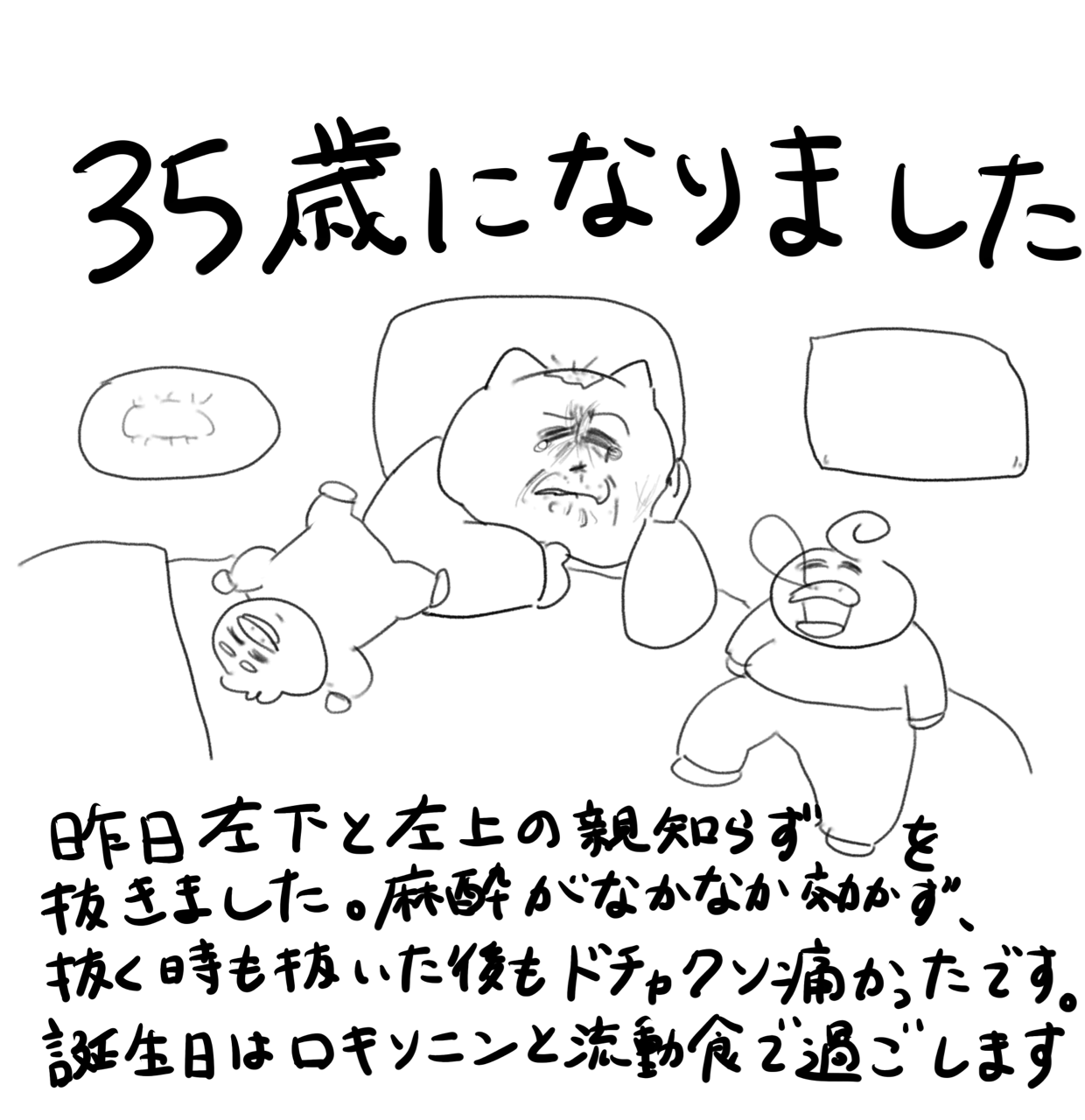 私は親知らずが1本も生えてないタイプで痛みは想像するしかできないので、せめて今日は穏やかに過ごすことができるよう祈っております🙏💦