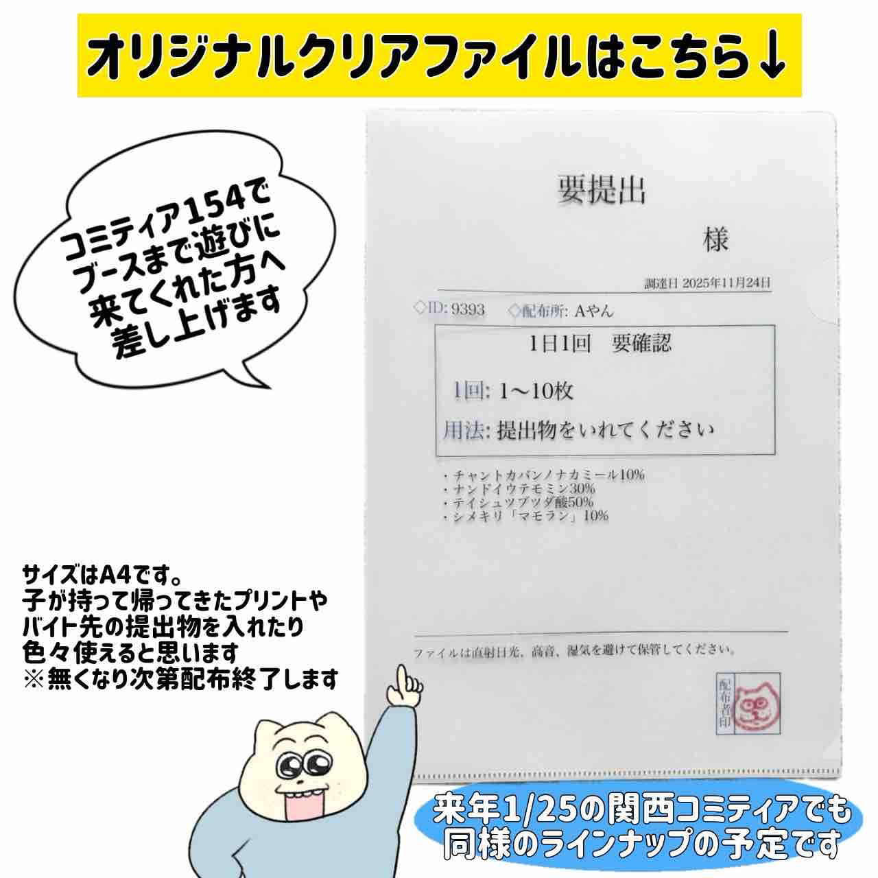 そして来てくれた方に絶対に損はさせたくないのでオリジナルクリアファイルも作りました。実用性抜群だと思いますので是非貰って帰ってください🙇🏻♂️※無くなり次第配布終了します