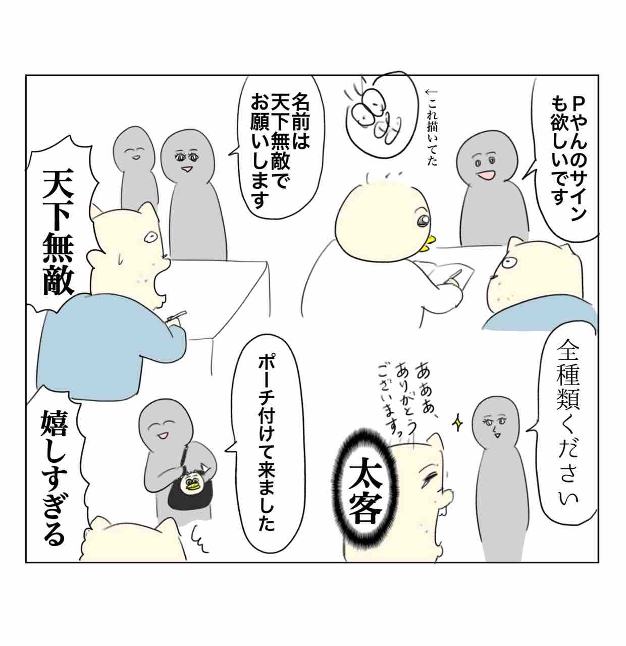 漫画にするのも言語化するのも難しかったんですが、自分のブースに想像以上に足を運んでもらえて本当にビックリしたのと、嬉しかったのと…!!驚きの方が大きかったかもしれません。